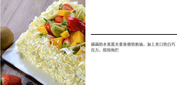 - 原料: 芒果(中国台湾)、草莓(中国)、蓝莓(美国)、奇异果(新西兰)、橙子(美国)、火龙果(中国)、淡奶油(法国)、白巧克力(法国)